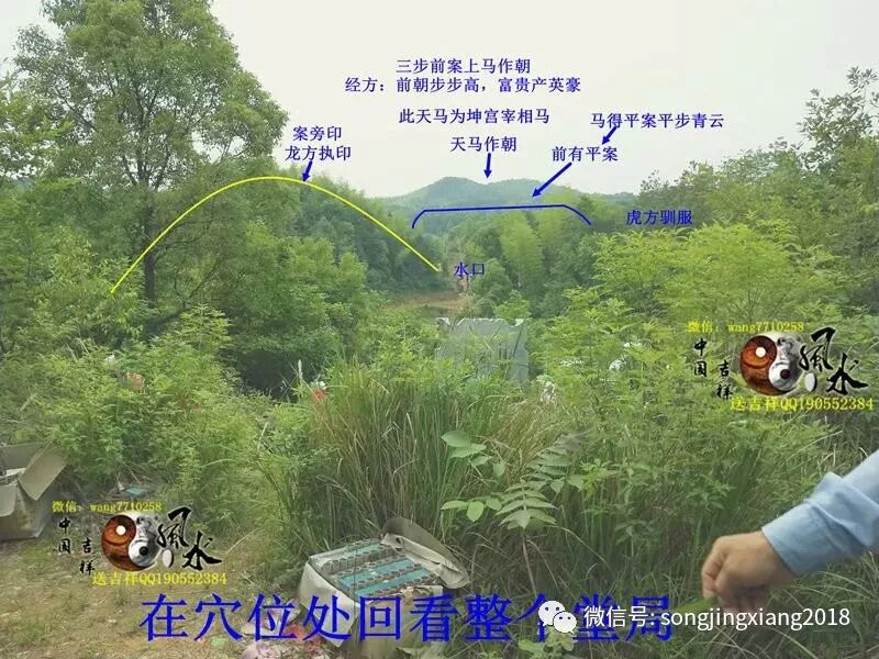 在穴位上方观看整局,天马作朝,三步案上朝马,此为坤申双山正朝峰,坤宫天马为宰相马,当然也指是外乡马,主后人外出做事求财至佳。