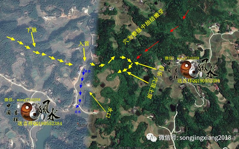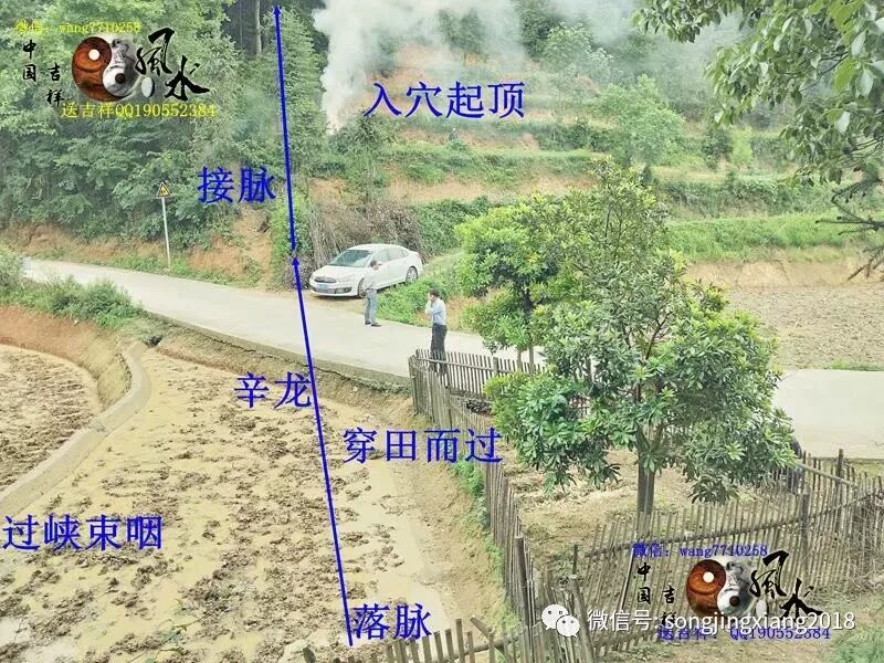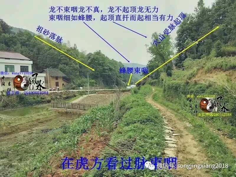 来到入首过脉束咽处,可以见得脉首短小,形如蜂腰,龙气融成