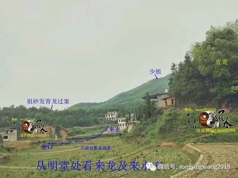在龙方回看少祖及明堂,明堂水口处仓板水聚
